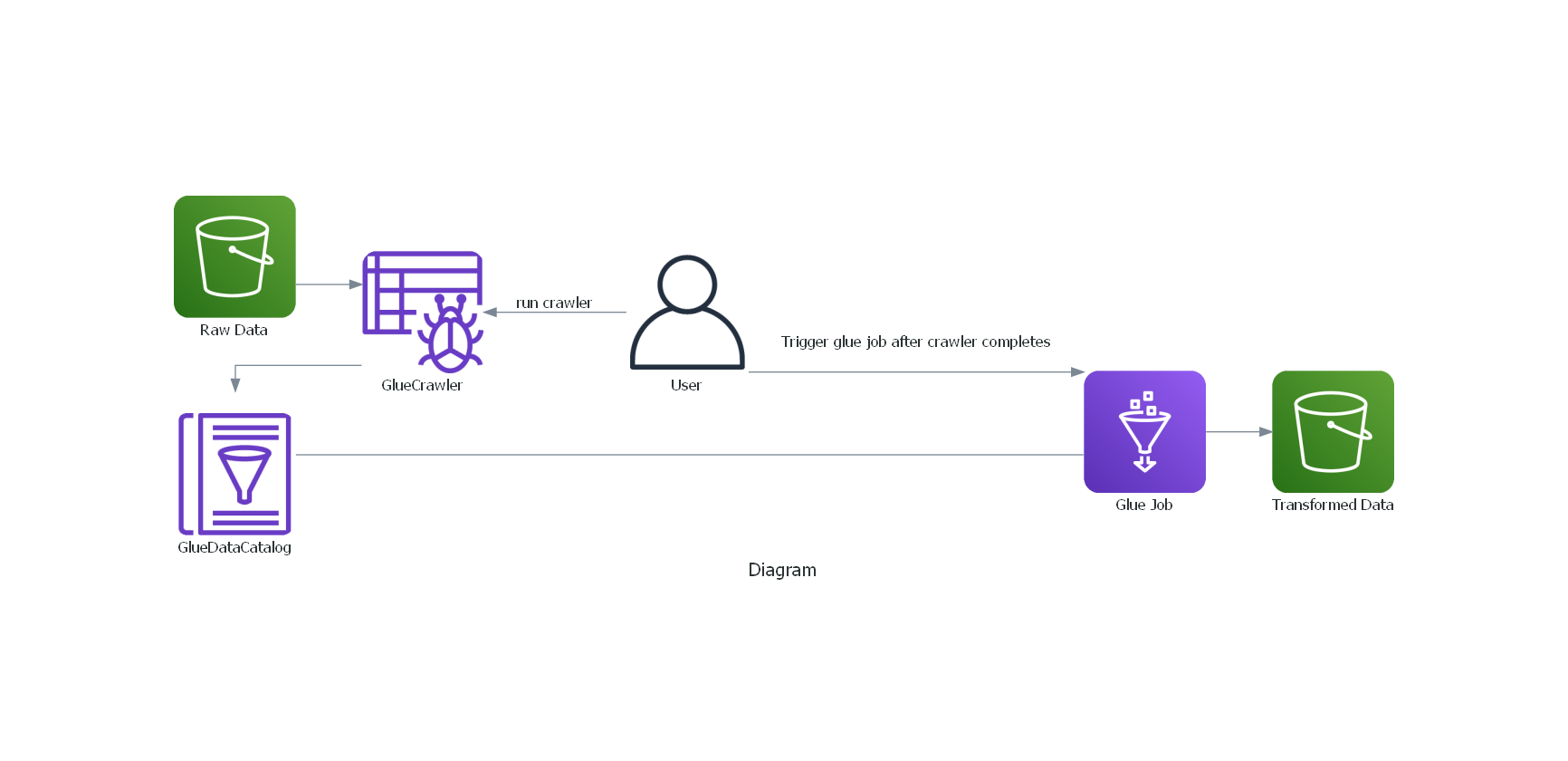The intended workflow is as depicted in the diagram below. The user triggers the glue crawler which populates the data catalog after crawling csv file from S3, using the custom classifier for header names and delimiter. The glue job can then be manually triggered by the user, which would fetch the data from the catalog and run a number of transforms and finally write the data back to S3.